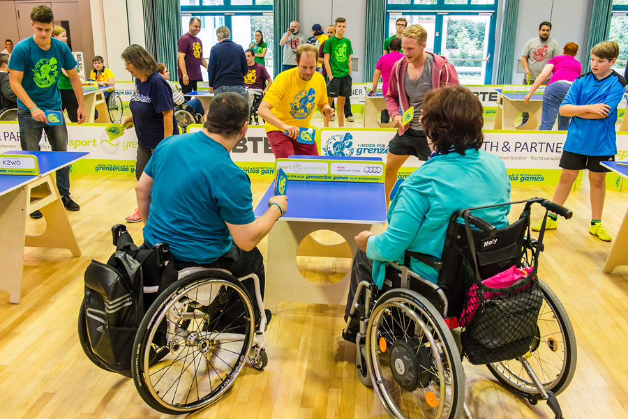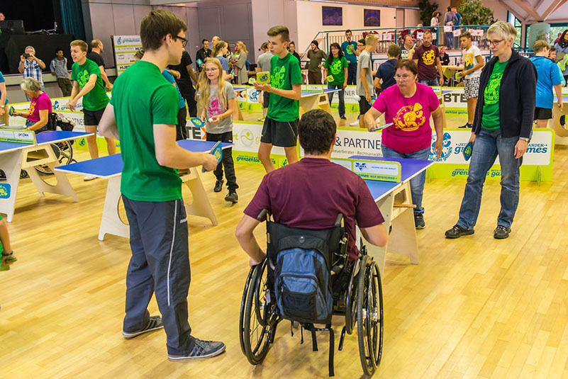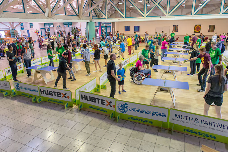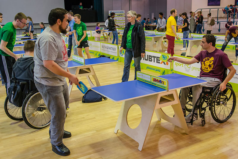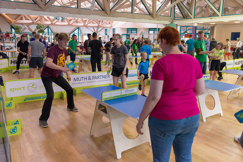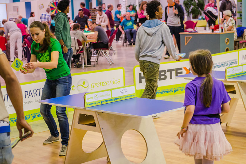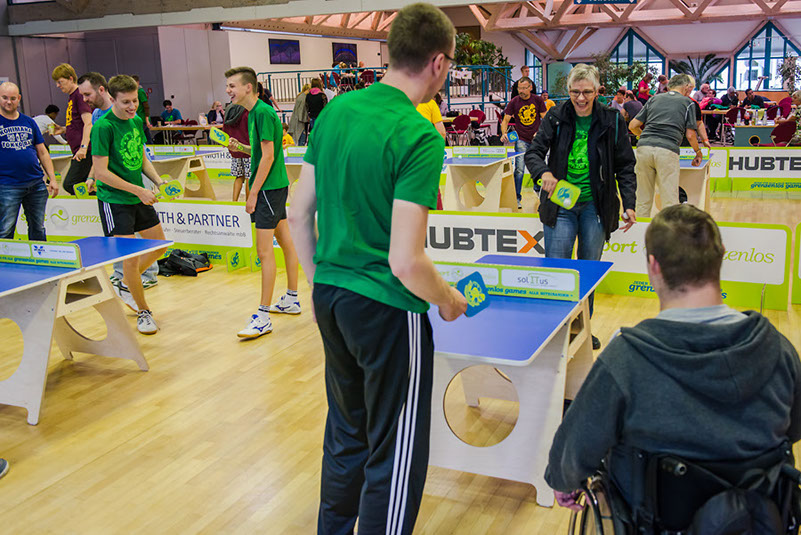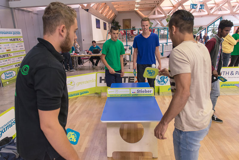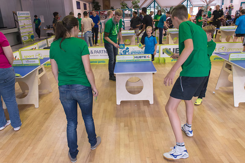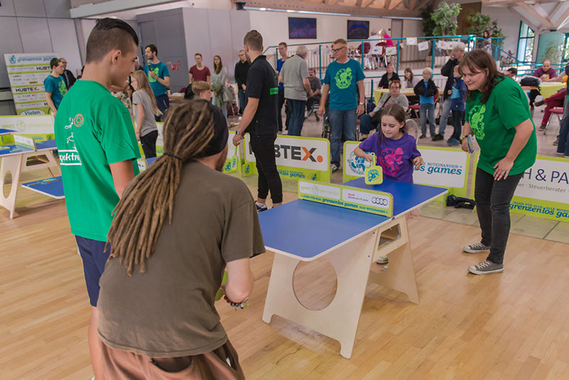 Die 1. grenzenlos games werden im „t-pong“ ausgetragen, einer innovativen Tischtennis-Variante an der „t-pong“-Platte mit „t-pong“-Schlägern.